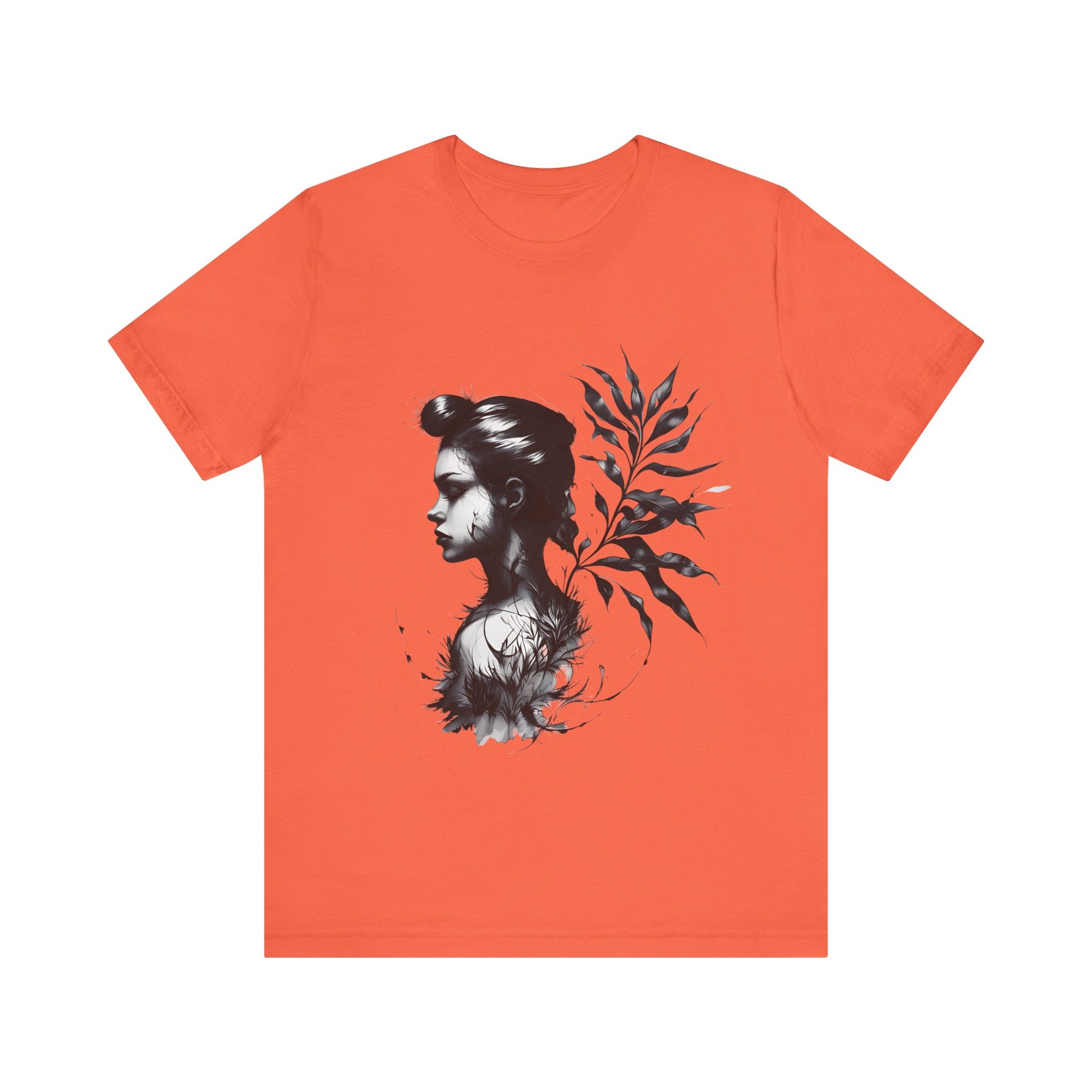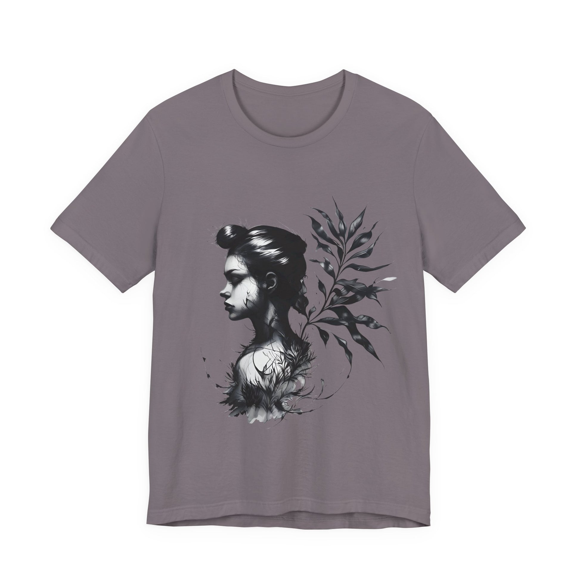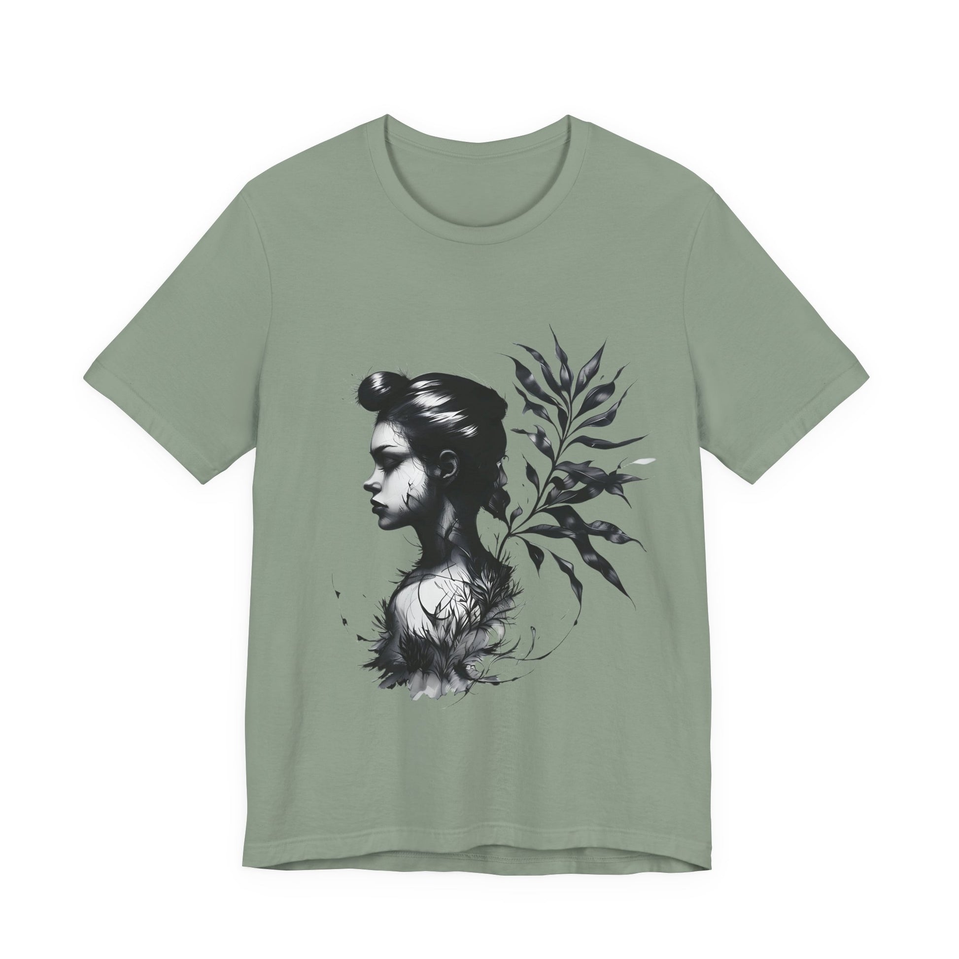 Make a bold statement with this Unisex Artistic Ink T-Shirt, showcasing a stunning black and white illustration of a woman entwined with wild botanical elements. Inspired by nature and feminine strength, this design fuses tattoo-style ink art with organic beauty — perfect for art lovers and free spirits.